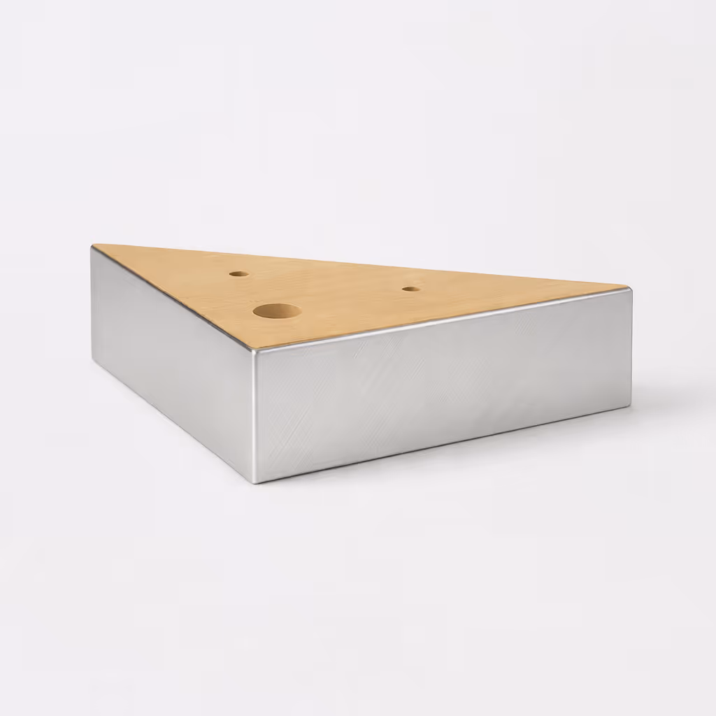 Driehoekige boxspringpoot van massief FSC-gecertificeerd hout, ontworpen voor een stabiele en luxe afwerking. De poot heeft een afmeting van 20×20×5 cm en is leverbaar in diverse kleuren. Speciaal ontwikkeld voor toepassing onder 4- en 5-sterren Hotelbedding boxsprings.
